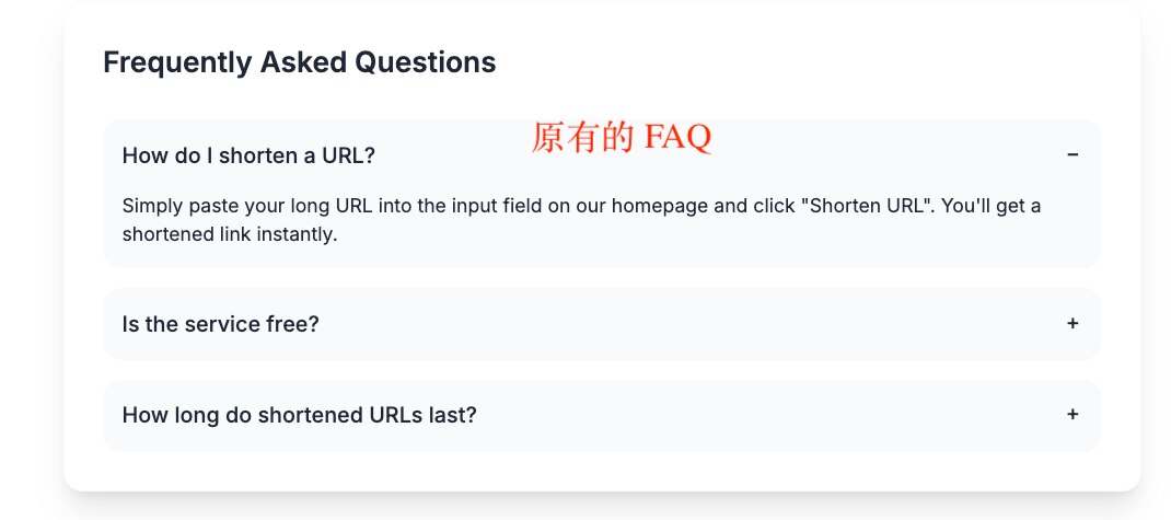 过度设计。 让优化短链接网站的 UI,会私自添加新的内容。我给的指示里,只提到“优化当前网站的 UI,有现代感,但不要有 AI 味,不要渐变色与毛玻璃风格”。 在两轮迭代后 GLM 就在主页上加入一个新链接,导向了一个并不存在功能页 doc。另外还在首屏区(hero section)介绍里额外添加了 “API 支持” 的提示,虽然这个项目是短链接网站,但主要还是我自己用,并没有提供公开 API。 这两处无中生有的修改,严格来说都跟 UI 需求没有关系。