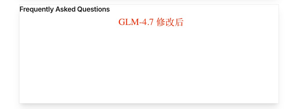 而 GLM-4.7 在两轮迭代之后又主动添加了渐变色与毛玻璃,我猜是模型的历史总结没有梳理好,上下文管理没有做到位,导致改到后面就忘了前面的设计需求。